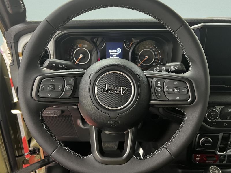 • QUICK ORDER PACKAGE 22W WILLYS -inc: 2.0L I4 DOHC DI Turbo Engine w/ESS 8-Speed Automatic 850RE Transmission 7 & 4 Pin Wiring Harness Conventional Differential Front Axle 4-Wheel Drive Swing Gate Decal Black Grille w/Gloss Black Rings Injection Molded Black Rear Bumper Dana M210 Wide HD Tube Front Axle Daytime Running Lamps LED Accents Front LED Fog Lamps LED Premium Reflector Headlamps Electronic Locker Rear Axle Corning Gorilla Glass Security Alarm Class II Receiver Hitch Mold In Color Bumper w/Gloss Black Advanced Brake Assist Automatic Headlamps Off-Road Plus Mode Willys Hood Decal Full Speed Forward Collision Warning Plus Rock Protection Sill Rails Power Heated Mirrors Enhanced Adaptive Cruise Control Auxiliary Switches Dana M220 Wide Rear Axle Molded in Color Rubicon Highline Flare Premium Wrapped Steering Wheel Sun Visors w/Illuminated Vanity Mirrors