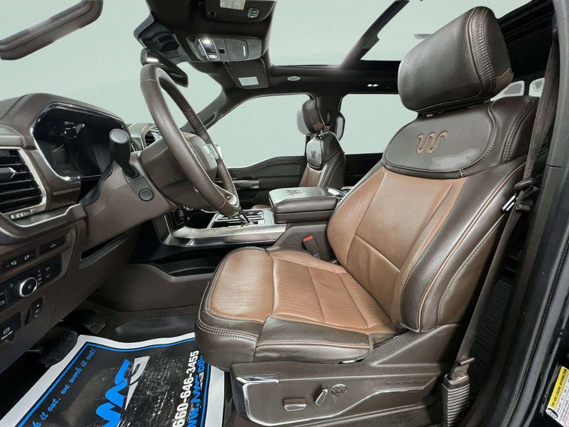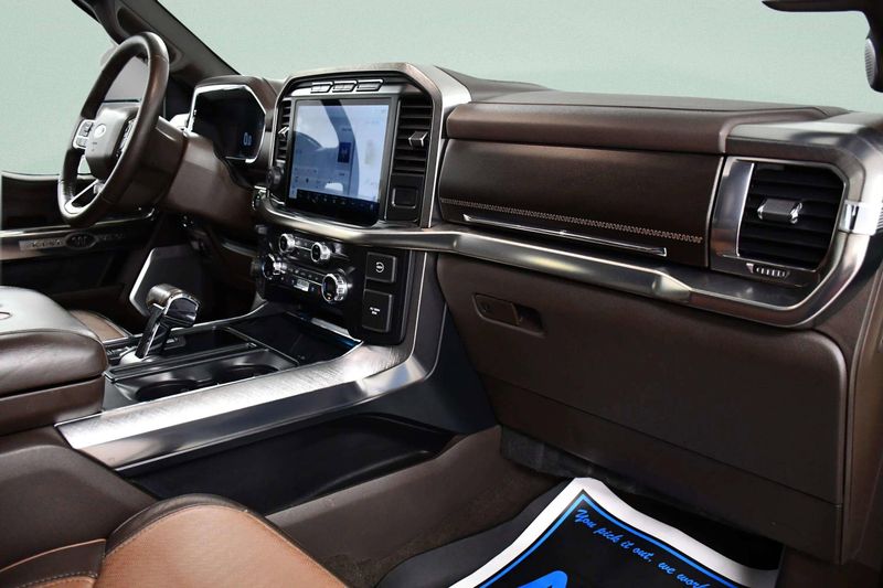 This 2021 Ford F-150 King Ranch Crew Cab 4x4 is the kind of truck that instantly upgrades your everyday---powered by a 3.5L V6 PowerBoost Full Hybrid engine and rolling on brand-new all-terrain tires for confident adventures on or off the pavement. It brings together luxury and capability with the King Ranch Chrome Appearance Package, Trailer Tow Package, bed liner, power running boards, and a panoramic sunroof that opens up every drive. Inside, leather heated and cooled massaging seats, remote start, and a 12 touchscreen with navigation, backup camera, and a premium B&O sound system make every mile feel first-class. Plus, Ford Co-Pilot360 safety tech---like Blind Spot Monitoring, Lane Keep Assist, Adaptive Cruise Control, and Intersection Assist---helps you move with peace of mind wherever the road leads.*This Ford F-150 Comes Equipped with These Options *KING RANCH CHROME APPEARANCE PACKAGE -inc: 2 chrome front tow hooks and tailgate applique, Chrome Door Handles w/Body-Color Strap, Front & Rear Chrome Bumpers, Bright Belt Moldings, Wheels: 20 Chrome-Like PVD, King Ranch wheel ornament, Chrome Skull Caps on Exterior Mirrors, FX4 OFF-ROAD PACKAGE -inc: Off-Road Tuned Front Shock Absorbers, Skid Plates, fuel tank, transfer case and front differential, Monotube Rear Shocks, Rock Crawl Mode, 4x4 FX4 Off-Road Bodyside Decal, Hill Descent Control, Electronic Locking w/3.31 Axle Ratio, Tray Style Floor Liner , EQUIPMENT GROUP 601A HIGH -inc: Radio: B&O Unleashed Sound System by Bang & Olufsen, HD Radio and 18 speakers including subwoofer, Power-Deployable Running Boards, Replaces step bar, Wheels: 20 Machined-Aluminum, light Caribou painted pockets and King Ranch ornament, Power Tailgate, tailgate step and tailgate work surface, Multi-Contour Driver & Passenger Seats, Active Motion, ENGINE: 3.5L POWERBOOST FULL-HYBRID V6 -inc: Electronic Locking w/3.73 Axle Ratio, 360 DEGREE CAMERA -inc: trailer reverse guidance, Voice Activated Dual Zone Front Automatic Air Conditioning, Trip Computer, Transmission: Electronic 10-Speed Automatic -inc: selectable drive modes: normal, ECO, sport, tow/haul, slippery, deep snow/sand and mud/rut, Transmission w/Driver Selectable Mode, Towing Equipment -inc: Trailer Sway Control.*Stop By Today *Come in for a quick visit at MAG Chrysler Dodge Jeep Ram, 310 S Washington St, Chillicothe, MO 64601 to claim your Ford F-150!This vehicles stock# is 21A3803For the most accurate prices and vehicle information go to www.magcdjr.com