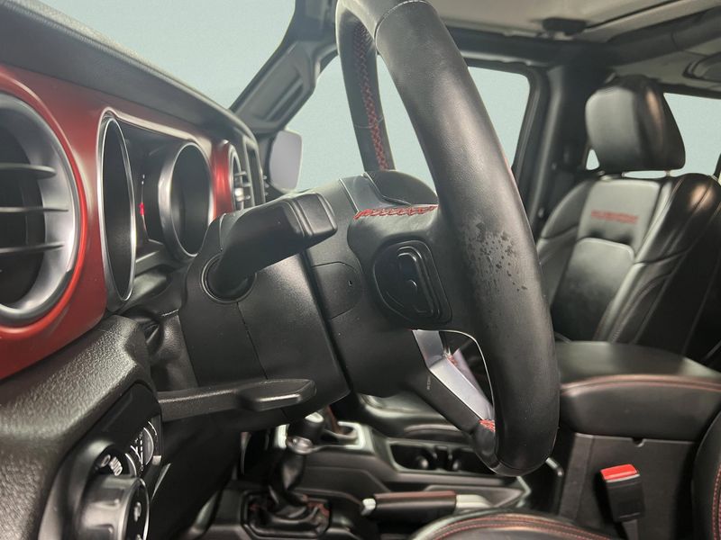 This 2022 Jeep Gladiator Rubicon Crew Cab 4x4 blends legendary off-road capability with everyday comfort and utility. Powered by a proven 3.6L V6 engine, it's ready for trail adventures, towing, or daily driving with confidence.The removable hard top convertible lets you enjoy open-air freedom when the weather's right, while the tow package adds extra versatility for work or weekend fun. Out back, the bed liner and bed cover help protect your gear and keep everything secure.Inside, you'll find leather heated seats, remote start, and an easy-to-use 8.4-inch touchscreen media center with navigation and a backup camera to keep every drive comfortable and connected.If you're looking for a truck that can handle rugged trails and still feel right at home around town, this Gladiator Rubicon delivers the best of both worlds.*Experience a Fully-Loaded Jeep Gladiator Rubicon *Wheels: 17 x 7.5 Granite Crystal Aluminum, Voice Activated Dual Zone Front Automatic Air Conditioning, Variable Intermittent Wipers, Urethane Gear Shifter Material, Trip Computer, Trailer Wiring Harness, Towing Equipment -inc: Trailer Sway Control, Tire Specific Low Tire Pressure Warning, Tailgate/Rear Door Lock Included w/Power Door Locks, Tailgate Rear Cargo Access, Streaming Audio, Solid Axle Rear Suspension w/Coil Springs, Smart Device Integration, Single Stainless Steel Exhaust, Side Impact Beams, Sentry Key Immobilizer, Removable Rear Window, Remote Keyless Entry w/Integrated Key Transmitter, Illuminated Entry and Panic Button, Regular Box Style, Redundant Digital Speedometer.*Drive Your Jeep Gladiator Rubicon With Confidence *According to Carfax's history report: Carfax One-Owner Vehicle, No Accidents Reported, 9 Service Records.*Visit Us Today *A short visit to MAG Chrysler Dodge Jeep Ram located at 310 S Washington St, Chillicothe, MO 64601 can get you a trustworthy Gladiator today!For the most accurate prices and vehicle information go to www.magcdjr.comThis vehicles stock# is 22A4196.