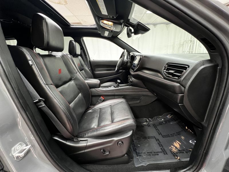 TRANSMISSION: 8-SPEED AUTOMATIC (850RE) (STD), FRONT LICENSE PLATE BRACKET, ENGINE: 3.6L V6 24V VVT UPG I W/ESS (STD), BLACK, LEATHER TRIMMED BUCKET SEATS, 2ND ROW FOLD/TUMBLE CAPTAIN CHAIRS -inc: 2nd Row Mini Console w/Cupholders, 2nd Row Seat Mounted Inboard Armrests, 6 Passenger Seating, 3rd Row Floor Mat & Mini Console, Wireless Phone Connectivity, Wheels: 20 x 8.0 Fine Silver, Valet Function, USB Host Flip, Urethane Gear Shifter Material. This Dodge Durango has a powerful Regular Unleaded V-6 3.6 L/220 engine powering this Automatic transmission.*Experience a Fully-Loaded Dodge Durango GT Premium *Trunk/Hatch Auto-Latch, Trip Computer, Transmission: 8-Speed Automatic (850RE), Transmission w/Driver Selectable Mode and Sequential Shift Control w/Steering Wheel Controls, Towing Equipment -inc: Trailer Sway Control, Tires: 265/50R20 BSW AS LRR, Tire Specific Low Tire Pressure Warning, Tailgate/Rear Door Lock Included w/Power Door Locks, Streaming Audio, Steel Spare Wheel, Sport Heated Leather Steering Wheel, Speed Sensitive Variable Intermittent Wipers, Smart Device Remote Engine Start, Side Impact Beams, Short And Long Arm Front Suspension w/Coil Springs, Sentry Key Immobilizer, Remote Releases -Inc: Power Cargo Access, Remote Keyless Entry w/Integrated Key Transmitter, 2 Door Curb/Courtesy, Illuminated Entry and Panic Button, Redundant Digital Speedometer, Red Accent Stitching.*Drive Your Dodge Durango GT Premium With Confidence *According to Carfax's history report: Carfax One-Owner Vehicle, No Damage Reported, No Accidents Reported, 5 Service Records.*Stop By Today *For a must-own Dodge Durango come see us at MAG Chrysler Dodge Jeep Ram, 310 S Washington St, Chillicothe, MO 64601. Just minutes away!*Factory Certified: Inspected & Protected*This vehicle comes with a Like-New warranty which is Factory-Backed by Chrysler: a 7 Year/100,000 Mile Powertrain and 3 Month/3,000 Mile Maximum Care plus much more! Please contact your sales advisor to confirm certification as not all vehicles qualify due to but not limited to buy back, recalls, loaners, year, miles, etc.