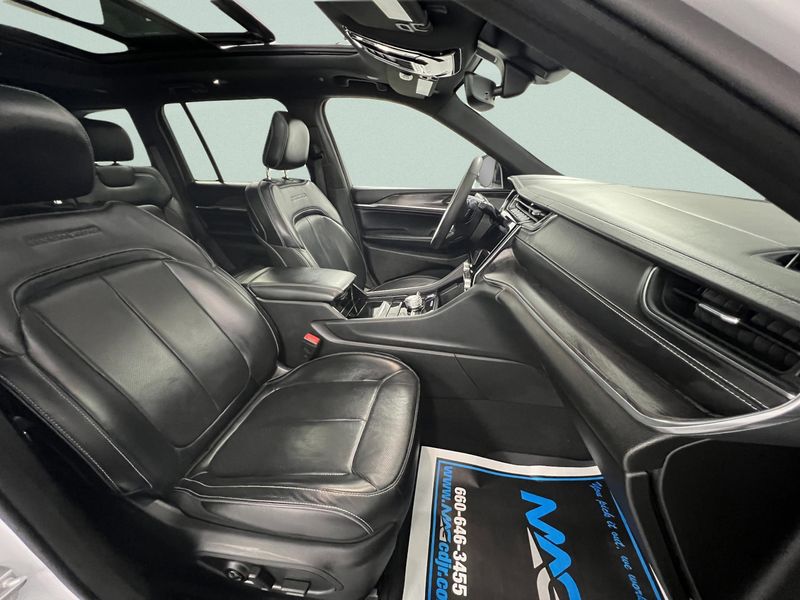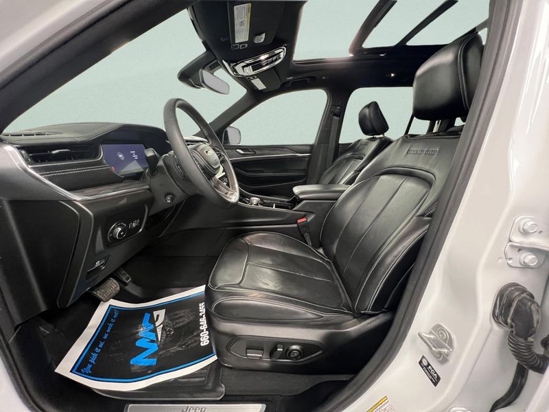 The 2023 Jeep Grand Cherokee Overland 4x4 with its proven 3.6L V6 is the kind of SUV that fits your life whether you're towing the boat for the weekend or just tackling the daily commute with confidence. The tow package adds capability when you need it, while the panoramic sunroof and heated and cooled leather seats make every drive feel like a reward. Remote start gets it ready before you step outside, and the Uconnect 5 touchscreen with navigation keeps you connected and on track. With advanced safety features like adaptive cruise control, active lane management, forward collision warning, blind spot monitoring, pedestrian and cyclist emergency braking, and traffic sign recognition, you'll feel supported from every angle. It's comfort, confidence, and classic Jeep capability all wrapped into one smart, adventure-ready package.This vehicles stock# is 23A4268-571.*This Jeep Grand Cherokee Features the Following Options *GLOBAL BLACK, NAPPA LEATHER SEATS, FRONT LICENSE PLATE BRACKET, ENGINE: 3.6L V6 24V VVT UPG I W/ESS (STD), BRIGHT WHITE CLEARCOAT, 19 SPEAKERS HIGH PERFORMANCE AUDIO -inc: 950 Watt Amplifier, Wireless Phone Connectivity, Voice Activated Dual Zone Front Automatic Air Conditioning, Valet Function, Trip Computer, Transmission: 8-Speed Automatic 850RE, Transmission w/Driver Selectable Mode and Sequential Shift Control w/Steering Wheel Controls, Trailer Wiring Harness, Tire Specific Low Tire Pressure Warning, Tailgate/Rear Door Lock Included w/Power Door Locks, Streaming Audio.*Living In The Fast Lane Doesn't Mean Compromising On Quality with This Jeep Grand Cherokee Overland *According to Carfax's history report: Carfax One-Owner Vehicle, No Damage Reported, No Accidents Reported, 7 Service Records.*Visit Us Today *Test drive this must-see, must-drive, must-own beauty today at MAG Chrysler Dodge Jeep Ram, 310 S Washington St, Chillicothe, MO 64601.